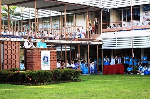 The morning started with the usual morning assembly announcements, but there was more in store for the Assuntarians today. When the time came to launch Frog Buzz Week, the outgoing duo, Archana and Florence, took the stage.